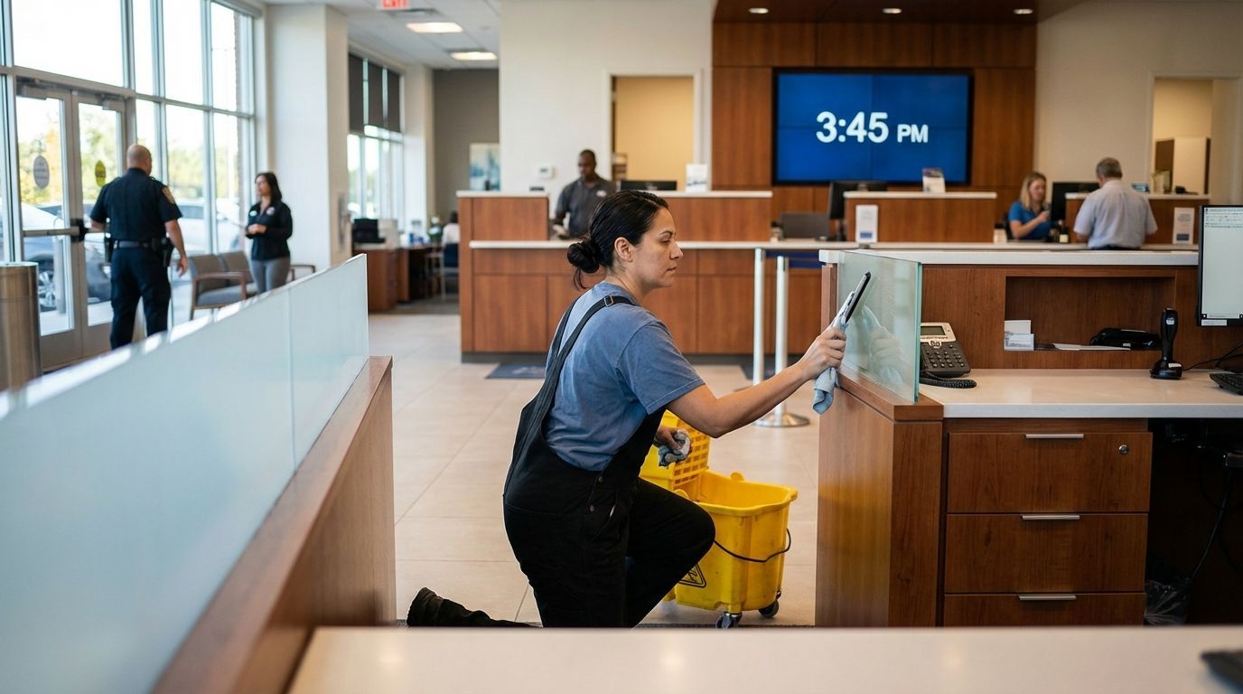Bloomington Commercial Cleaning provides specialized office and workspace cleaning services for financial institutions in Bloomington, MN. We help banks, credit unions, investment firms, and financial service offices maintain clean, organized, professional environments that support productivity and reinforce credibility.